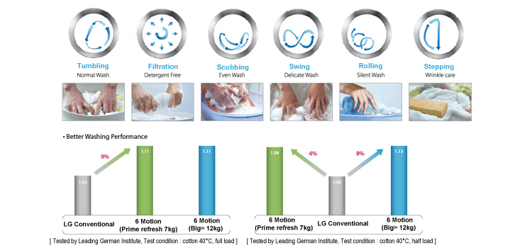 6 motion : Wrinkle free by stepping on washing and spinning cycleHow Steam Refresh Course removes wrinkle and odors