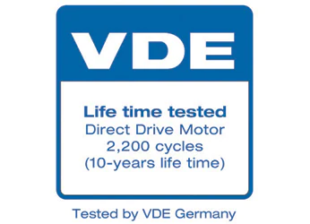 The Direct Drive motor for the washing machine manufactured by LG Electronics has no defects during a full 2,200 cycles and has been verified to endure a 10-year lifespan.