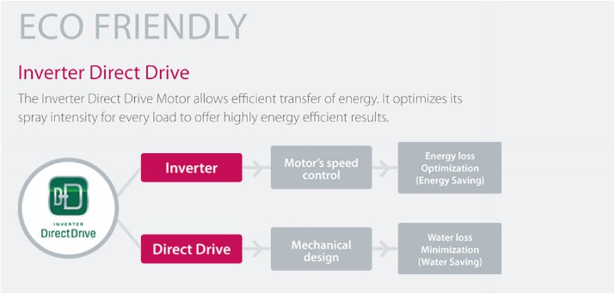 The Inverter Direct Drive Motor allows efficient transfer of energy. It optimizes its spray intensity for every load to offer highly energy efficient results.