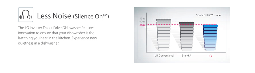 The LG Inverter Direct Drive Dishwasher features innovation to ensure that your dishwasher is the last thing you hear in the kitchen. Experience new quietness in a dishwasher.