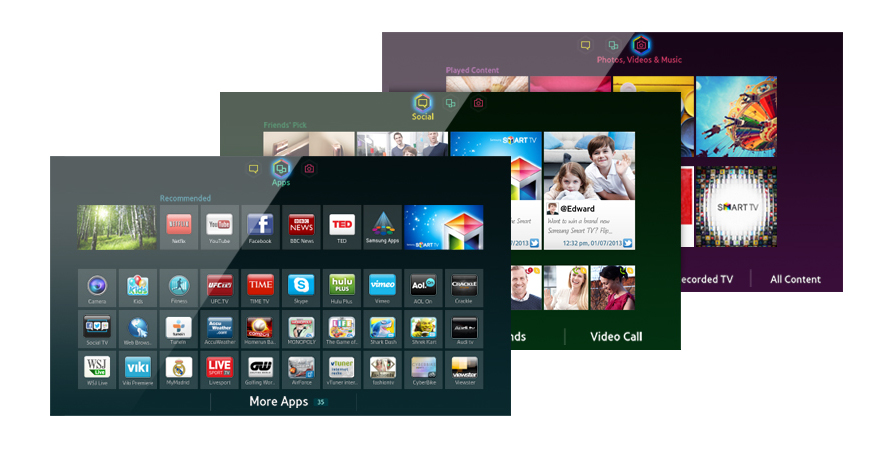 Get in right where the action is. Samsung’s Smart Hub creates the best environment for top notch entertainment. With immediate access to apps, videos and music, you will never feel lonely. Enjoy great apps from your Samsung Smart TV. Stay in the centre of your social circle with Smart Hub’s social page and see your friends’ favourite video clips through Facebook and Twitter. And even access photos, videos and clips on all compatible devices like a PC or a camera.