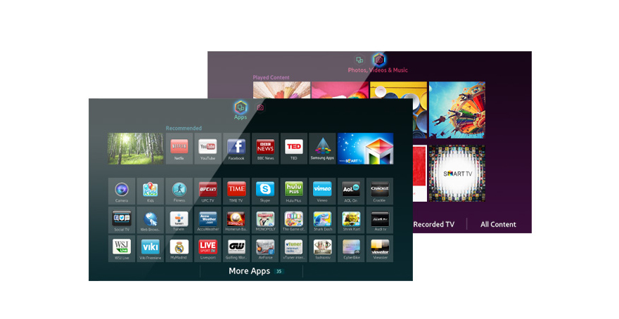 Get in right where the action is. Samsung’s Smart Hub creates the best environment for top notch entertainment. With games, apps, videos and music, you will never feel bored. Enjoy great apps from your Samsung Smart TV. And even access photos, videos and clips on all compatible devices like a smart tablet, a PC or a camera.