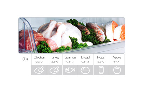Fresh 0 Zone is a specialized zone for the separated food preservation in optimal temperature range. It has a front cover as an isolated space to maintain lower temperature than other shelves in the fridge compartment. Also, LG Fresh 0 Zone has minimal temperature fluctuation to keep your food fresher and longer