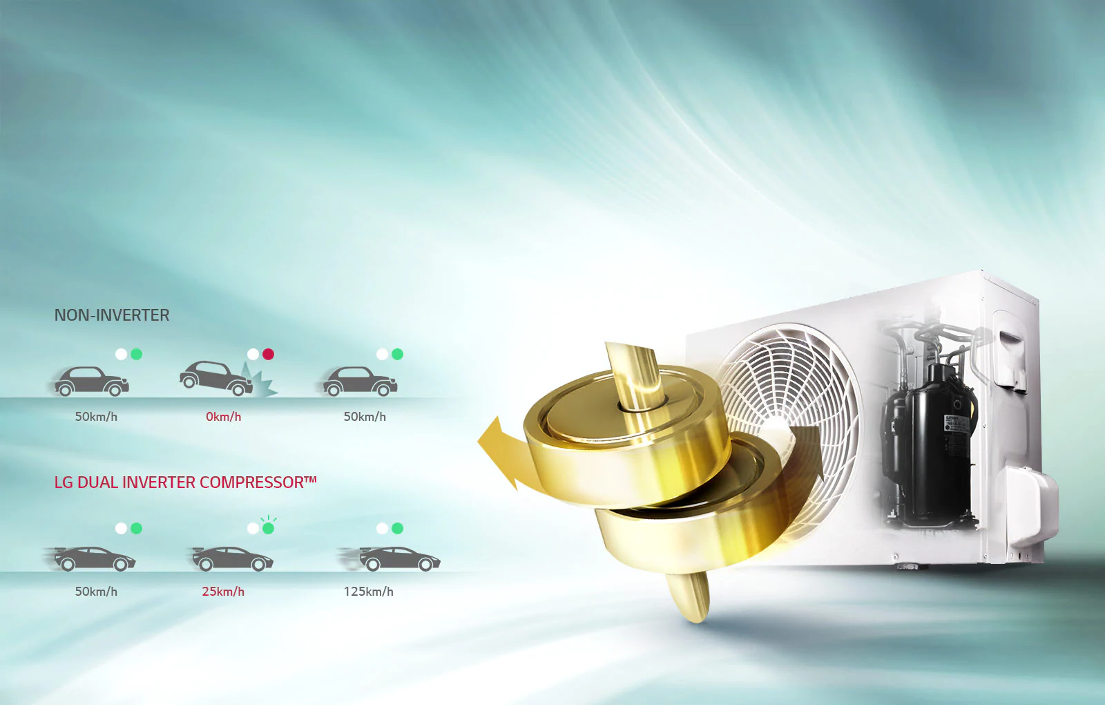(™Dual Inverter Compressor) مع تردد نطاق التشغيل الموفر للطاقة على توفير المزيد من الطاقة بخلاف الضاغط التقليدي.