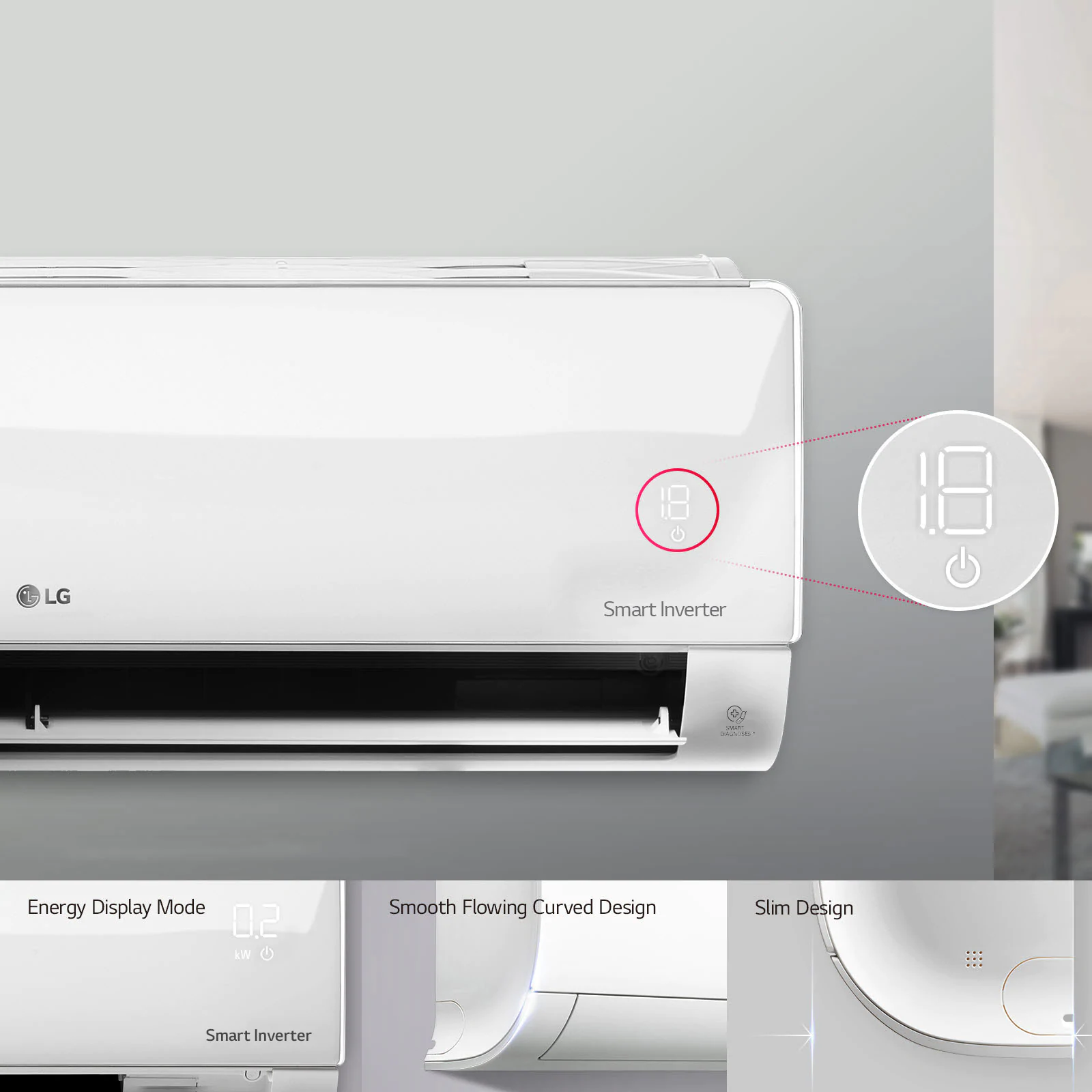 التصميم الحديث والرفيع لمكيف هواء LG يتيح سهولة التركيبة والتنظيف المريح باستخدام مرشح EZ المنزلق. علاوة على ذلك، تعتبر الشاشة الكبيرة المخفية مثالية لتفحص حالة الطاقة بشكل مريح.