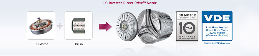 By eliminating its belt and pulley, LG’s Inverter Direct Drive System increases the motor’s efficiency - thus cutting back on energy use - and makes it less susceptible to breakdowns. The simplified system helps reduce noise levels as well.
