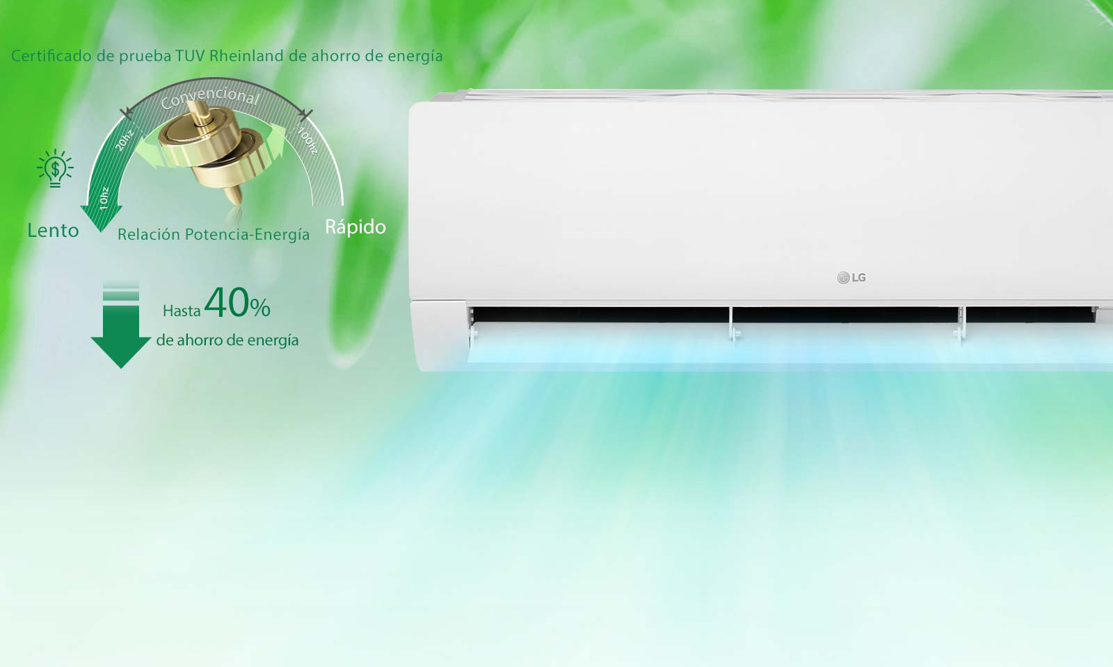con rangos de frecuencia de operación de ahorro de energía, ahorra más energía que cualquier compresor convencional.